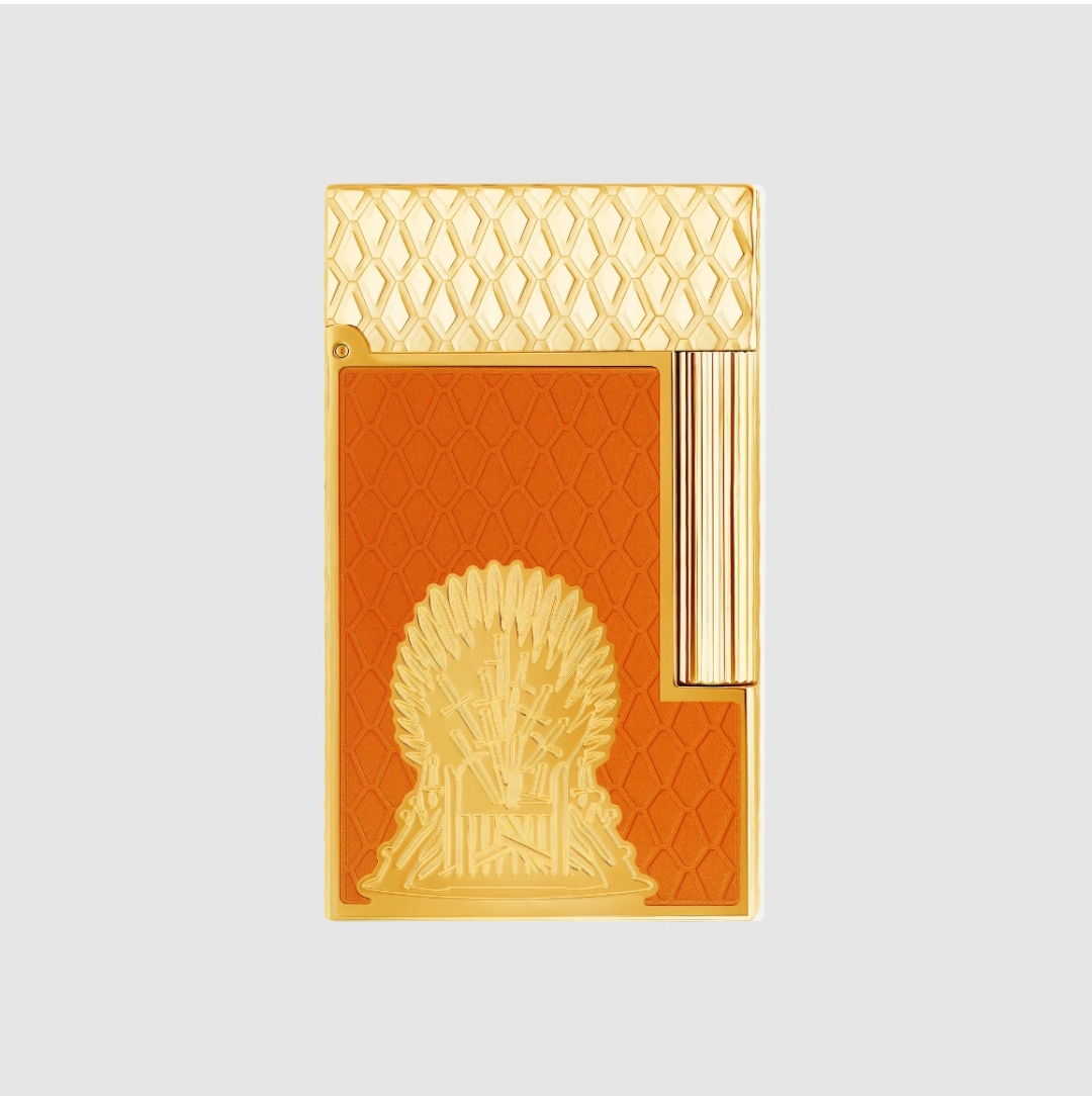فندک گازی مارک دوپونت کپی مدل تاج و تخت لاکی نارنجی