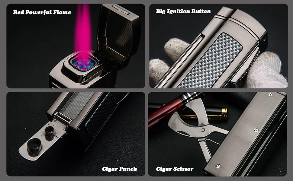 این فندک چهار شعله کوره ای همزمان میباشد که طراحی روکش کربن برروی دو طرف بدنه انجام شده و دارای کاتر میباشد