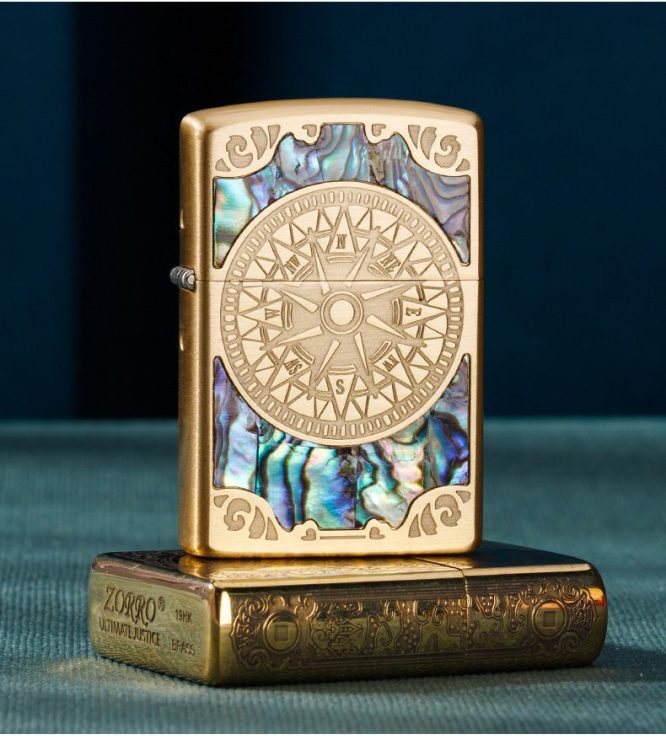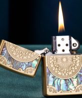 جنس بدنه این فندک برنج میباشد و به صورت حکاکی عمیق بر روی بدنه طراحی شده است و به طرف بدنه هم با صدف تزئین شده
