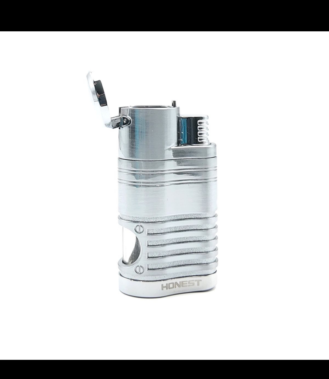 این محصول دارای نشان دهنده مخزن گاز چهار شعله همزمان پانچر کف بدنه به همراه جعبه و کاو میباشد که مناسب برای استفاده سیگار برگ میباشد