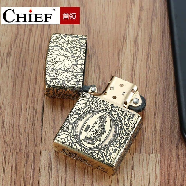 فندک بنزینی ما ک چیف مدل راهبه برنجی