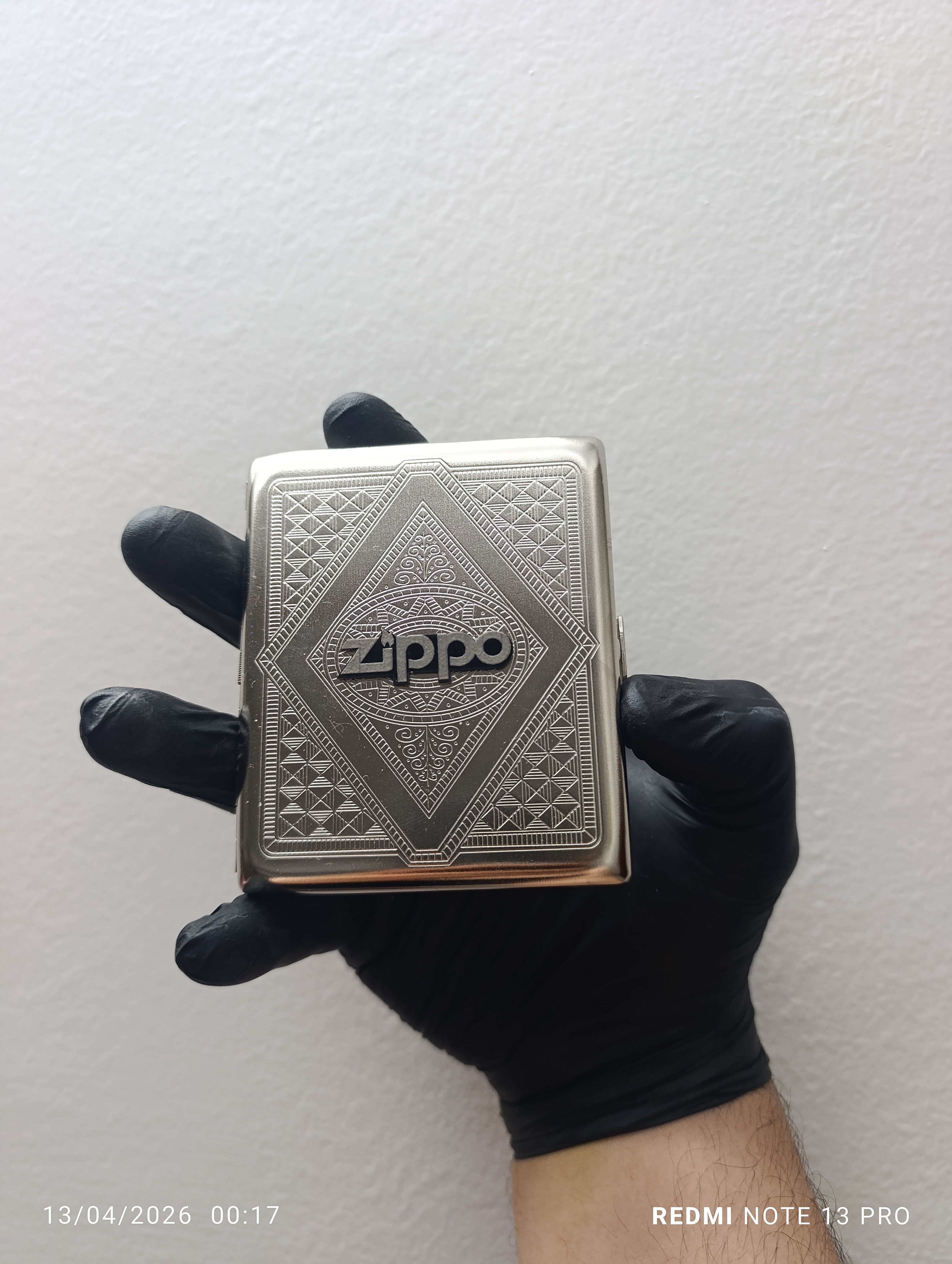 کیس سیگار فلزی استیل پلاک دار زیپو کد02